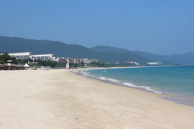 Практически во всех бухтах острова вход в море пологий и плавный, а у берега очень мелко, что очень удобно для купания, особенно с малышами. Пляжи условно поделены между отелями, но каких либо ограждений здесь нет, купаться и загорать, как правило, можно в любом понравившемся месте, ведь все пляжи здесь муниципальные. Вход почти везде бесплатный, также как и душ, раздевалка и туалет. Единственное, за что приходится платить – это зонтики и лежаки (20-50 CNY) и разнообразные водные развлечения (напр, 200 CNY за прогулку на катере или на «банане», до 1000 CNY за морскую рыбалку на специальной лодке).