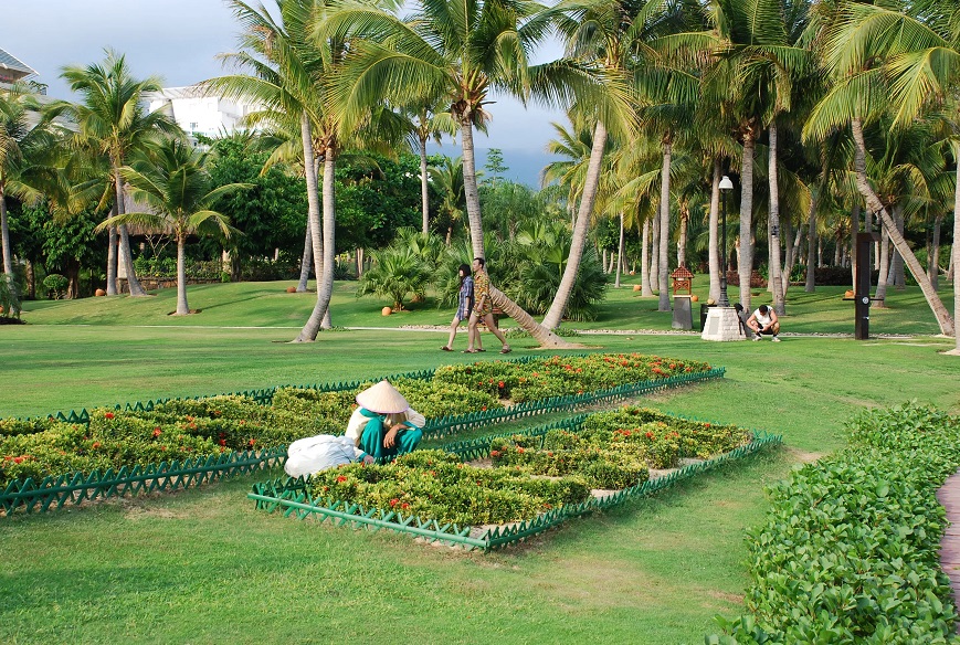 В Санье отели — это самодостаточные курортные зоны, на территории которых, как можно увидеть на фото, растет много зеленых насаждений. Каждый отель имеет один либо несколько бассейнов, располагает собственным пляжем. Туристы могут полноценно отдыхать, не покидая территорию отеля.