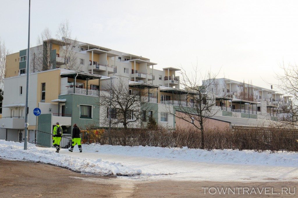 По мере удаления от метро, дома становятся ниже. Хельсинки не селит своих жителей в бесконечные муравейники.