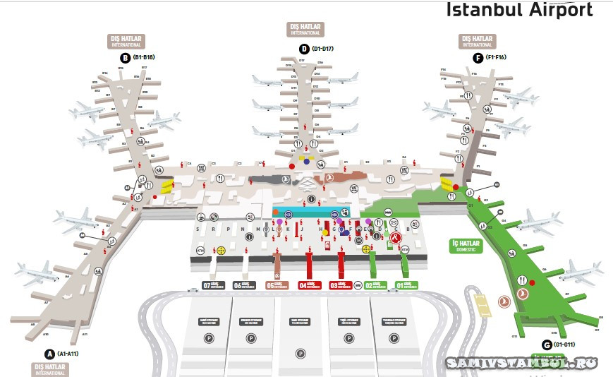 2-й путь — у вас есть наличные лиры или пополненная Istanbulkart (с прошлой поездки или от друзей) то вам лучше сразу пойти вправо и спустившись на уровень, выйти в транспортную зону (это будет Gate 17). Вы сразу сворачиваете вправо и идете до остановки автобуса.