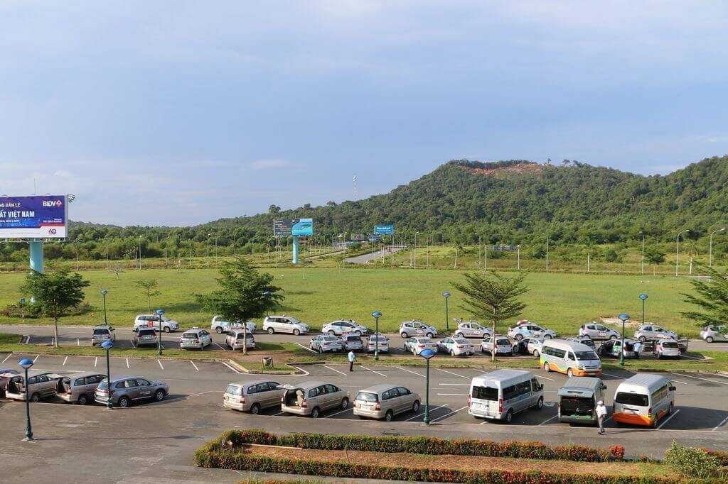 В аэропорту есть обмен валюты, и вы можете обменять 100 — 200 долларов на первое время. Сразу возле выхода находится стойка шатлбасов, небольших автобусов, на которых можно доехать до центра — города Зыонгдонг. Поездка будет стоить 50 000 донгов (2,3 доллара). Такси до города будет стоить 100 000 — 150 000 донгов. До Онг Ланга уже 250 000 донгов.