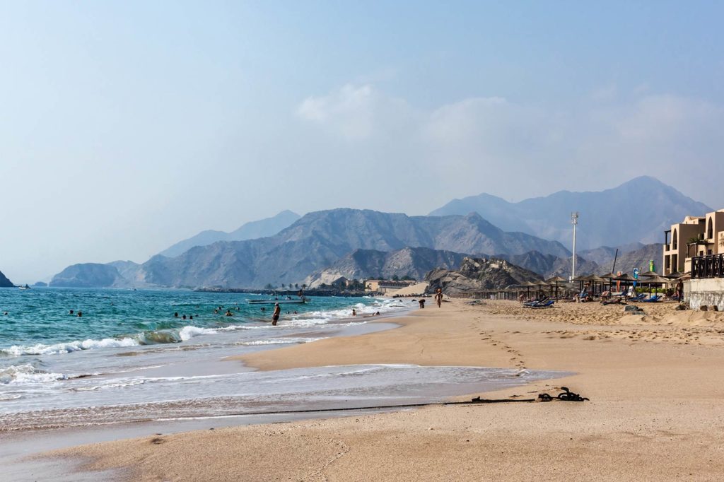 В этом году наши знакомые отдыхали в январе в Фуджейре – вода +26, воздух +24ᵒ С – конечно же купались. При этом в Шардже в это же самое время было заметно прохладнее, в море волны и окунаться совсем не было желания. Из минусов – далеко от Дубая и скучновато. Многие отели на 1 линии окружены пустыней и выйти просто не куда.