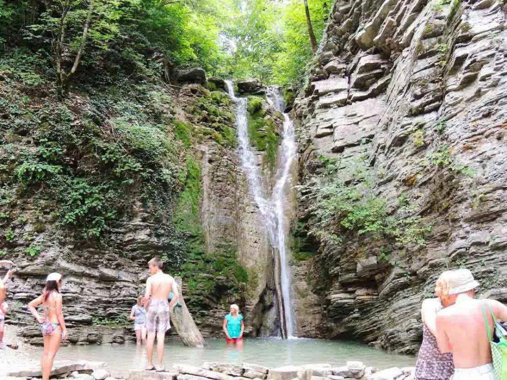 Мы взяли с собой бутерброды, квас и двинули в путь. Приехав на водопады, мы были остановлены охраной на КПП. Но местные показали обходную тропу, по которой мы вышли на огромную территорию природного парка. Мы гуляли весь день, купались в водопадах и конечно посмотрели древние дольмены.