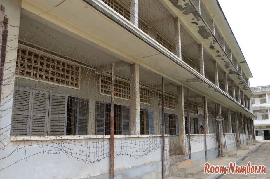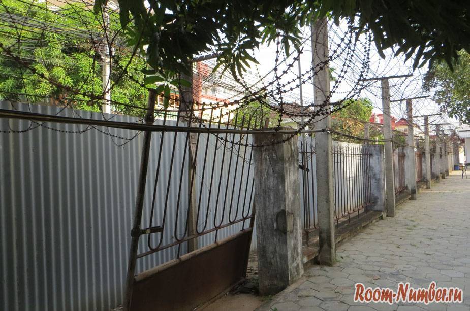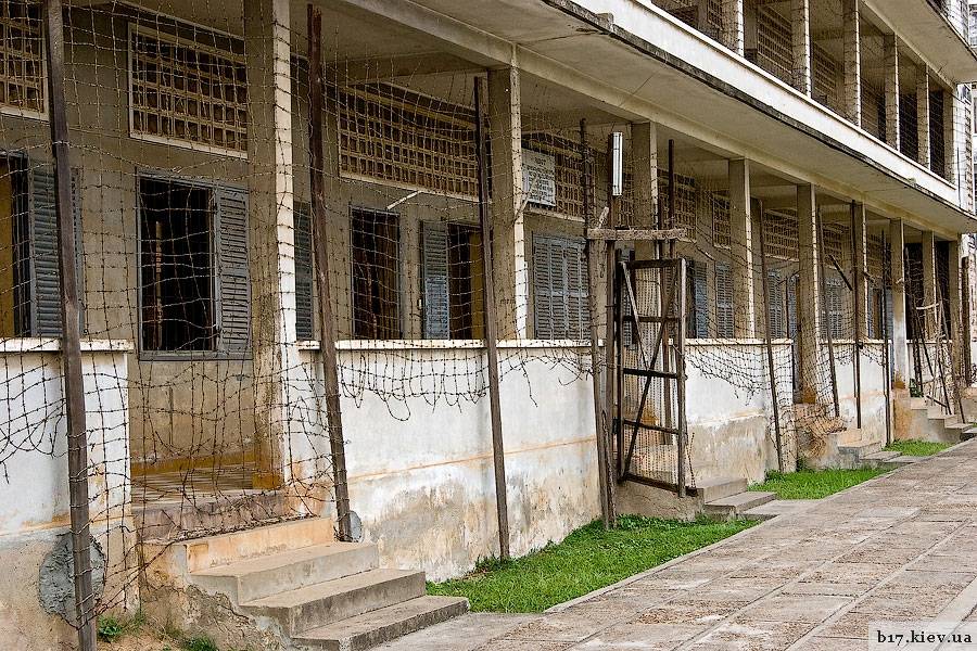 Музей геноцида Tuol Sleng, один из корпусов До сих пор все окутано колючей проволокой