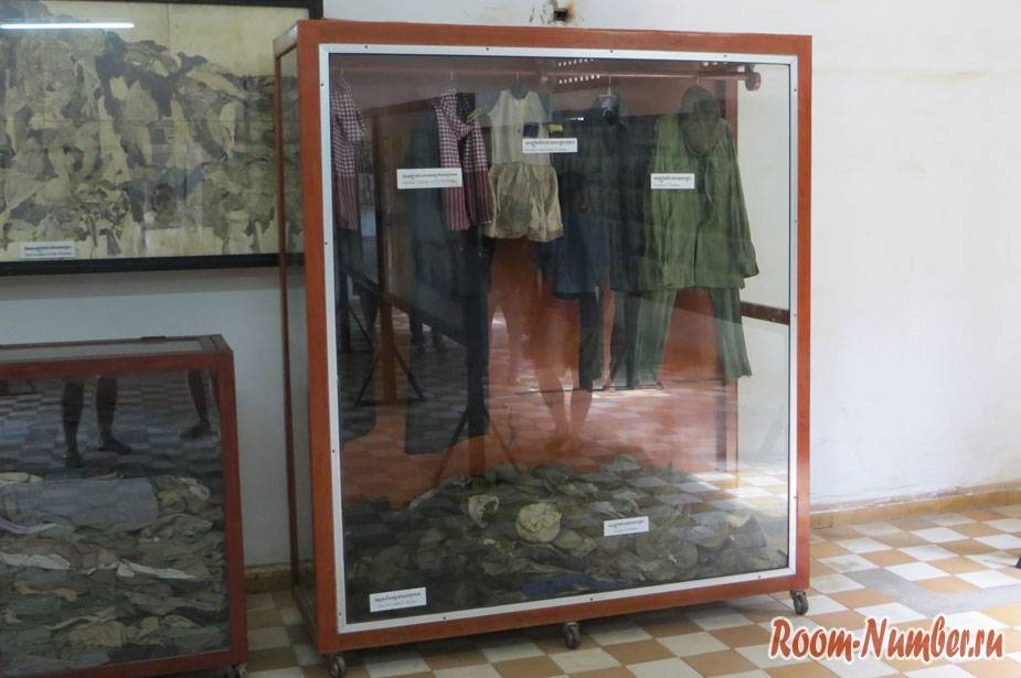 В музее геноцида сохранилась одежда красных кхмеров и заключенных.