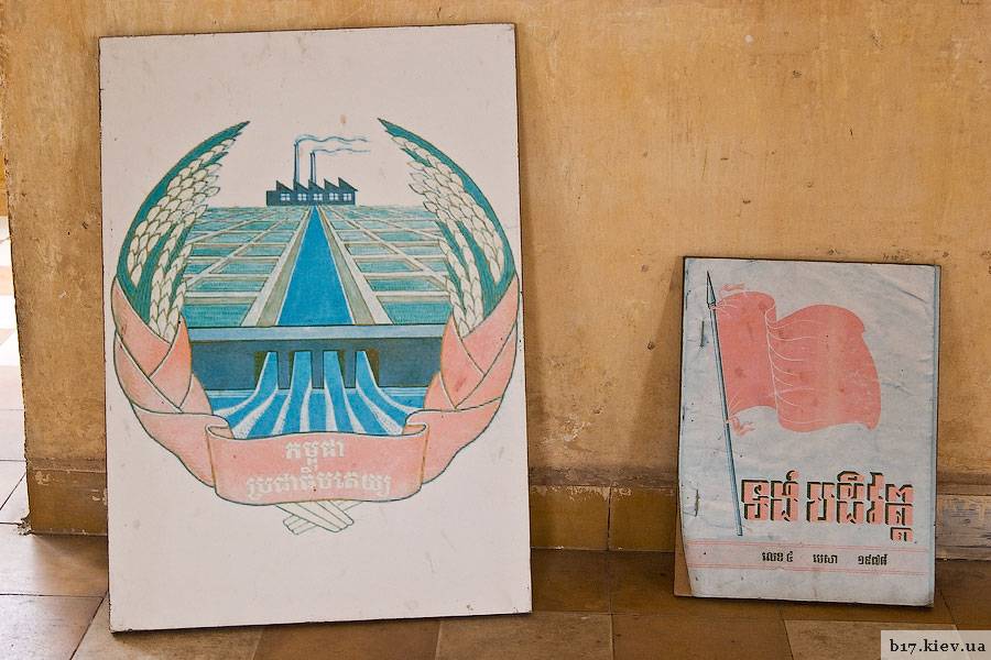 В некоторых зданиях стоят стенды с информацией о временах правления красных кхмеров.