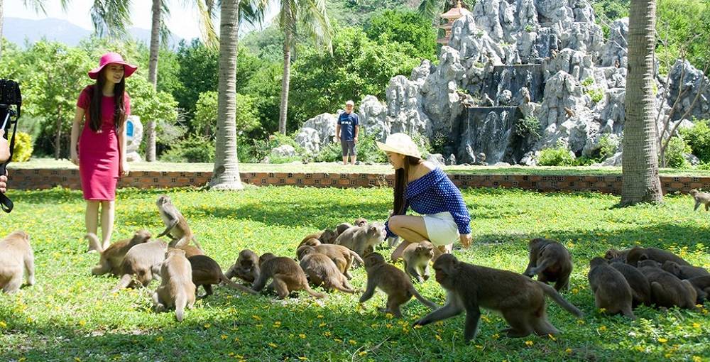 В каждый уголок острова ведёт небольшая дорожка, которая окружена аллеями. Есть указатели, чтобы удобно было ориентироваться. Что интересно, надписи на вьетнамском, на английском, и на русском. На русском правда кривовато, но в целом терпимо. Не без ресторанов и кафе, где можно попробовать морепродукты и не только. Ещё что удивительно, есть ларьки с одеждой. В целом, целая туристическая зона. Чтобы ещё больше удивить, тут можно найти даже картодром, он небольшой, но почему бы и не прокатиться. И вот мы приходим, к самому интересному – обезьянам.