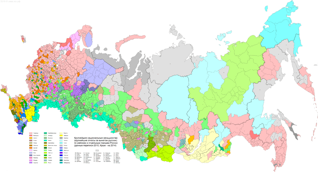 Карта крупнейший национальных меньшинств России, исключая русских: