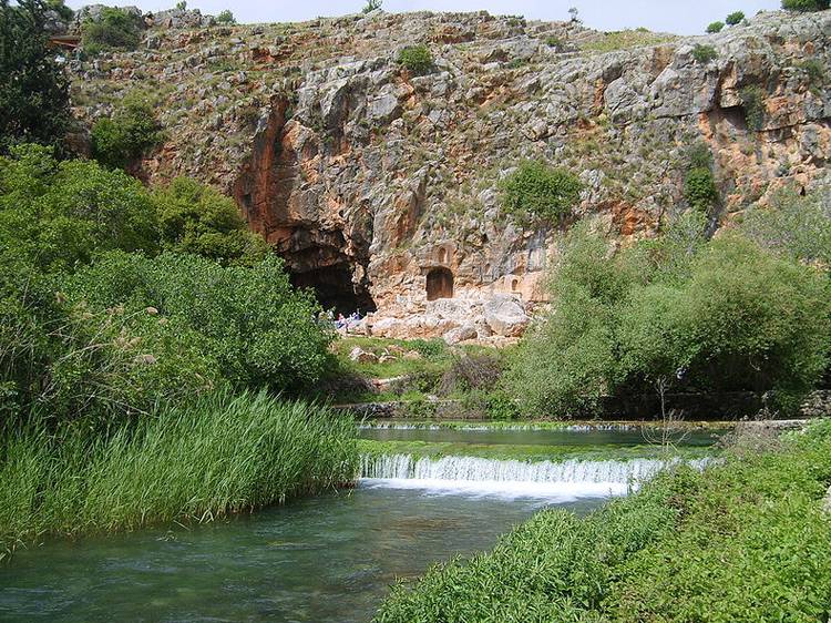 Около горы Хермон (у её подножья с севера) у истока реки Иордан, где в древности находился город, расположился национальный парк Баниас. В древности считалось, что протяжённость пещеры узнать невозможно и мнение людей было, что она тянется далее в восточной части Заиорданья. Легенда про Моисея гласит, что ему было не суждено дойти до обетованной Земли, поэтому он просил Бога, позволить перейти через эту пещеру. Из этой пещеры берёт начало ручей, это самый большой источник Иордана. Он тянется на много километров и по пути образует водопад Баниас, самый мощный и красивый в Израиле. Ручей Баниас на своём 9-ом км. соединяется с ручейком Дан и образуется река Иордан. От ручья тянется дорожка из ступенек прямо к пещере Баниас. Ещё одно имя, звучащее на арабском как Паниас (Фаниас) ручей получил от храма Бога Пана (Фана) развалины которого находятся рядом с пещерой Баниас. В настоящее время там, где находился город, оборудован заповедник один из самых красивых. По заповеднику проходят разные маршруты, небольшие и большие на 90 минут. Данный маршрут оснащён пунктом питания, где при желании можно попробовать друзскую питу с лабане. Любой маршрут приводит к водопадам. Кто не хочет проходить весь путь, может просто доехать и по этому билету пройти на водопад. В заповеднике нельзя входить в водоёмы и купаться.