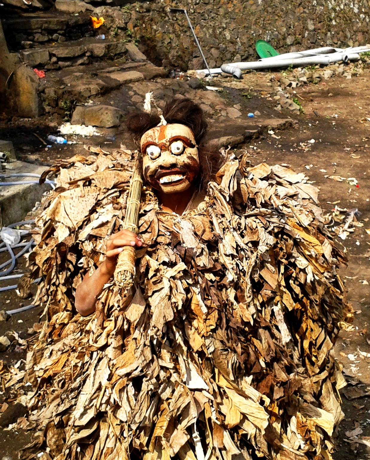 Перед тем, как приступить к ритуалу, мужчины 42 дня живут в храме, молятся и медитируют, не имеют права вступать в сексуальные контакты. Перед церемонией они одевают специальную одежду из сухих банановых листьев. Она состоит из двух накидок – одну завязывают на талии, другую на плечах. Лица прикрывают ритуальными масками. После танца жители деревни забирают банановые листья из одеяний домой, в качестве амулетов. Танцоры после представления идут к озеру Батур, чтобы омыться в его водах.