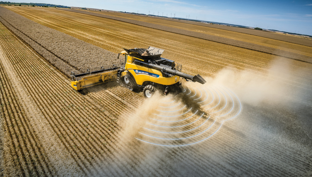 Поэтому фирма NEW HOLLAND в форме OptiSpread Automation разработала первую систему распределения измельченных пожнивных остатков с технологией прямого измерения. Двухмерные радарные датчики, прикрепленные к обеим сторонам комбайна, измеряют скорость и дальность выброса измельченного материала. Датчики регистрируют всю дальность выброса и, следовательно, картину распределения. Если картина распределения больше не соответствует номинальной схеме распределения по всей рабочей ширине, скорость нагнетателя с гидравлическим приводом увеличивается или уменьшается соответственно с обеих сторон до тех пор, пока картина распределения снова не будет соответствовать номинальной. Технология определяет неравномерное распределение измельченного материала даже при попутном или встречном ветре, а также позволяет создать карту распределения.