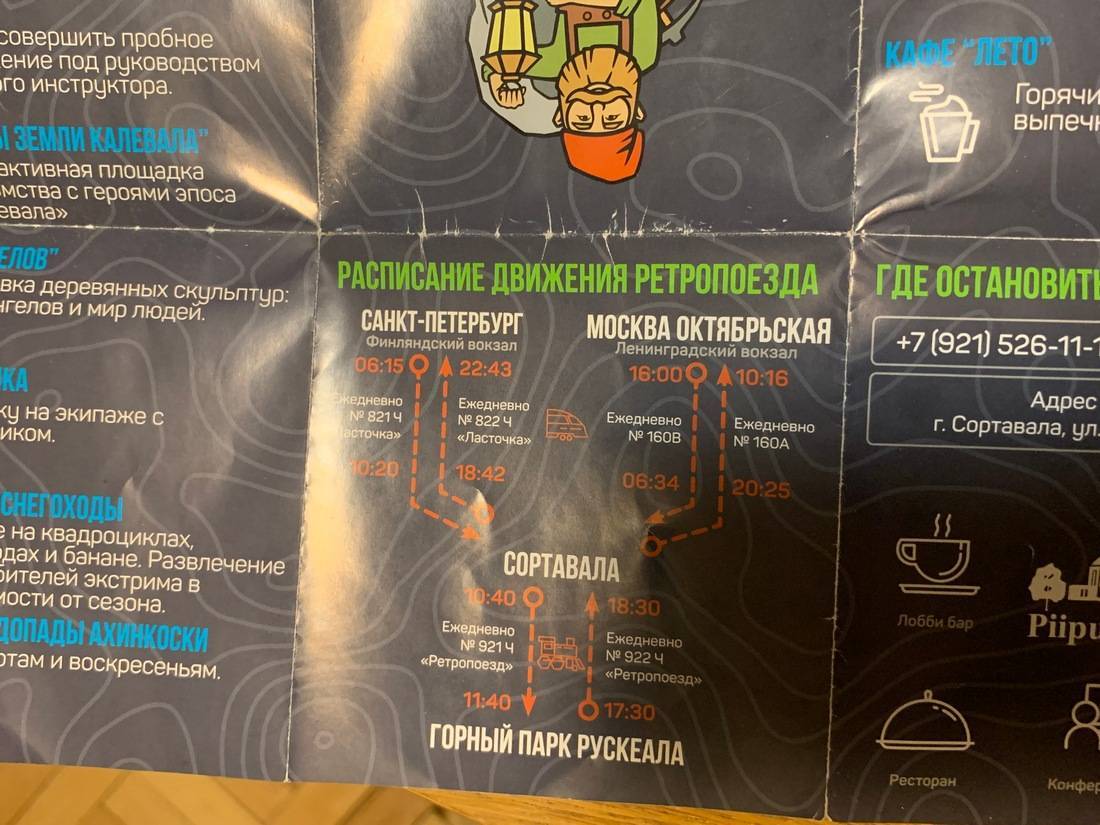 Если вы путешествуете из Петербурга или Москвы на поезде, всё просто: после возвращения из Рускеалы на ретропоезде ночуете в Сортавале и берёте билет на поезд на следующий вечер.