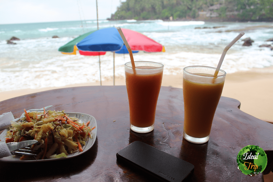 Как начали, по-тихоньку, заселять пляж местные — Шри-Ланкийцы, мы со Стасом отправились на пляж Мирисса, чтобы разнообразить день. Пообедали в кафе, который называется «Serfview», с которого наблюдали, как катались по волнам сёрферы иностранцы.