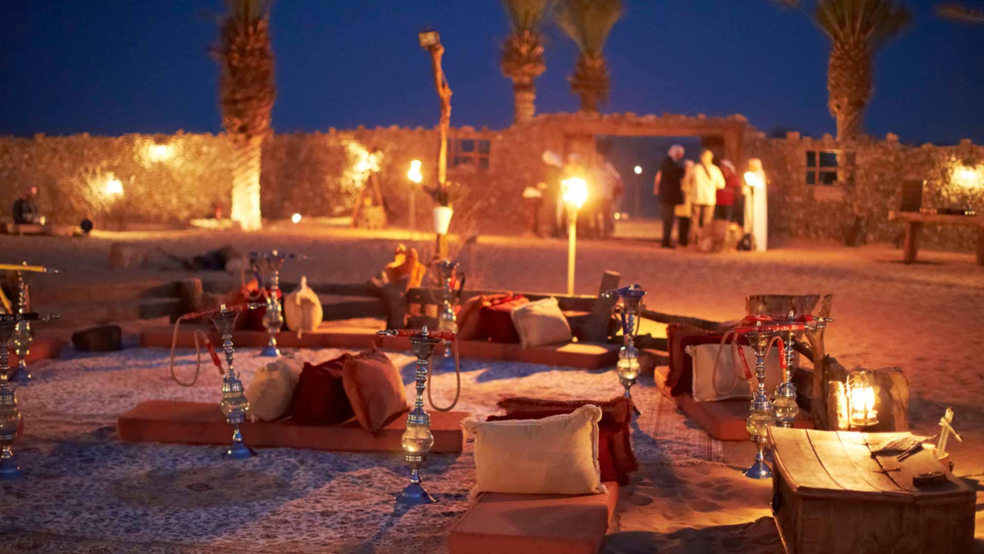 Активные туристы направляются в пустошь верхом на верблюдах или на джипах. Любители более комфортного отдыха расслабляются в СПА при отеле.