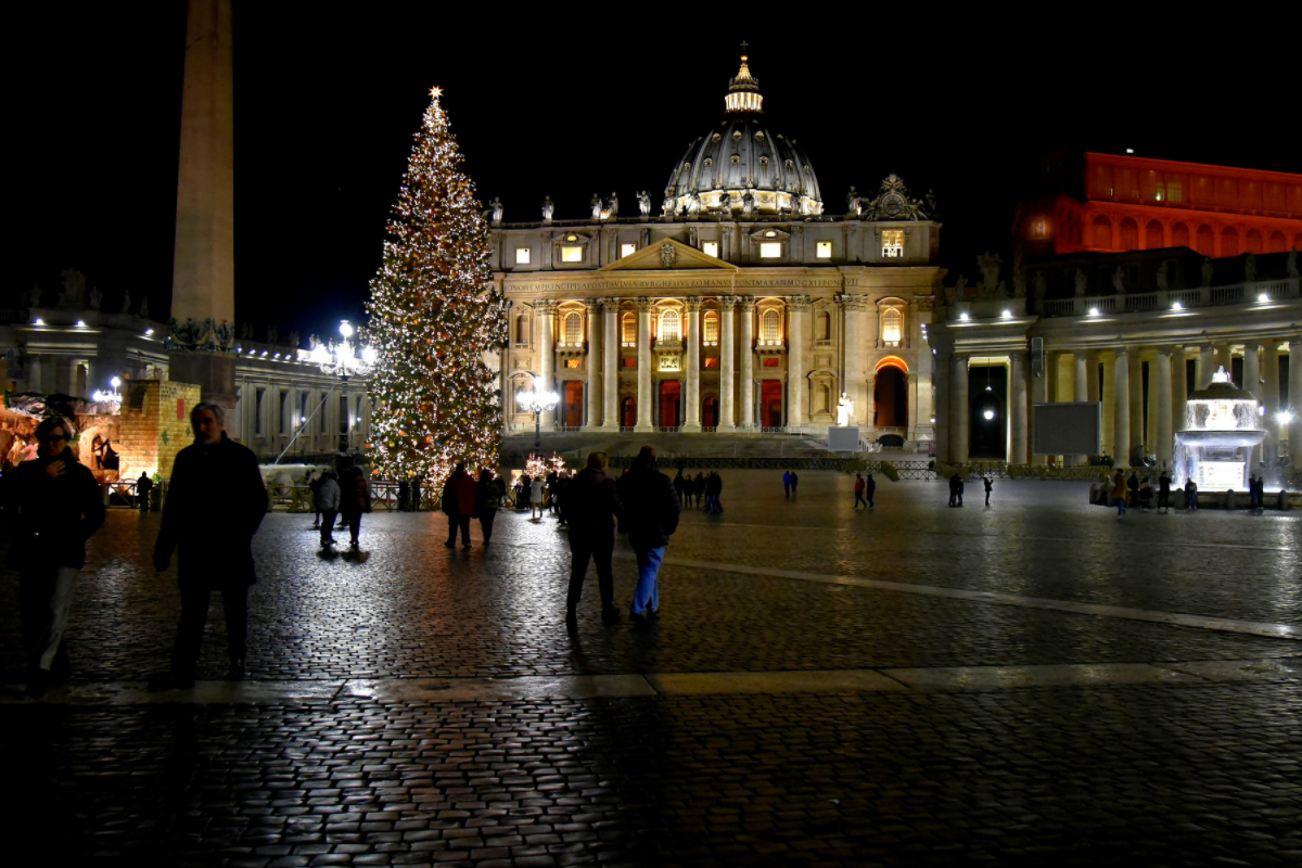 Рождественская ель, как и ясли с младенцем Иисусом в натуральную величину, будут оставаться на площади Святого Петра до 7 января, праздника Крещения Господня.