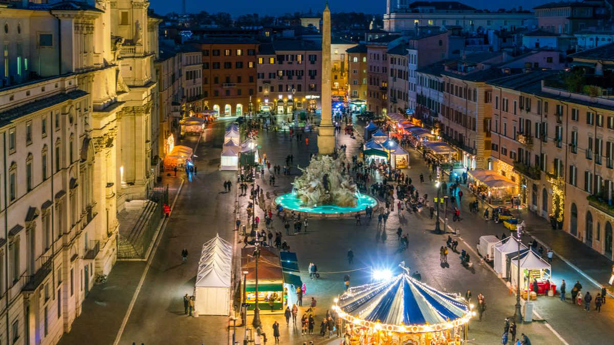 Рынки и праздничные деревья не являются традиционными для Италии в рамках празднования Рождества. Это традиции таких стран, как Германия и Австрия, и некоторых северных итальянских регионов, примыкающих к Австрии. В Риме рождественских базаров мало, и они довольно скромные. Самый известный находится на площади Навона. Здесь продают игрушки, украшения, сладости, выпечку и изделия местных мастеров. На рождественском рынке можно сфотографироваться с ведьмой Бефаной (доброй ведьмой, которая приносит детям подарки) и Babbo Natale (итальянский Дед Мороз), прокатиться на карусели.
