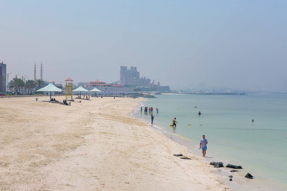 Вода в Персидском заливе достаточно тёплая для купания, но всё таки ниже нормы. В некоторые года она даже остывала до 21 градуса, но обычно можно рассчитывать на 22-24 градуса, то есть купаться вполне можно