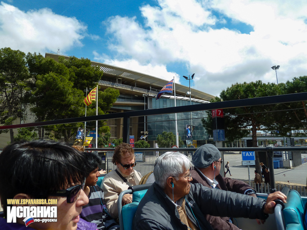 Далее, пересекая центр Барселоны, маршрут туристического автобуса проходит через футбольный стадион Камп Ноу (El Estadio del Fútbol Club Barcelona). Это самый большой футбольный стадион в Европе, рассчитанный на 100 тыс. зрителей. Здесь можно посетить музей ФК Барселоны, купить билеты на матч и всевозможную атрибутику.