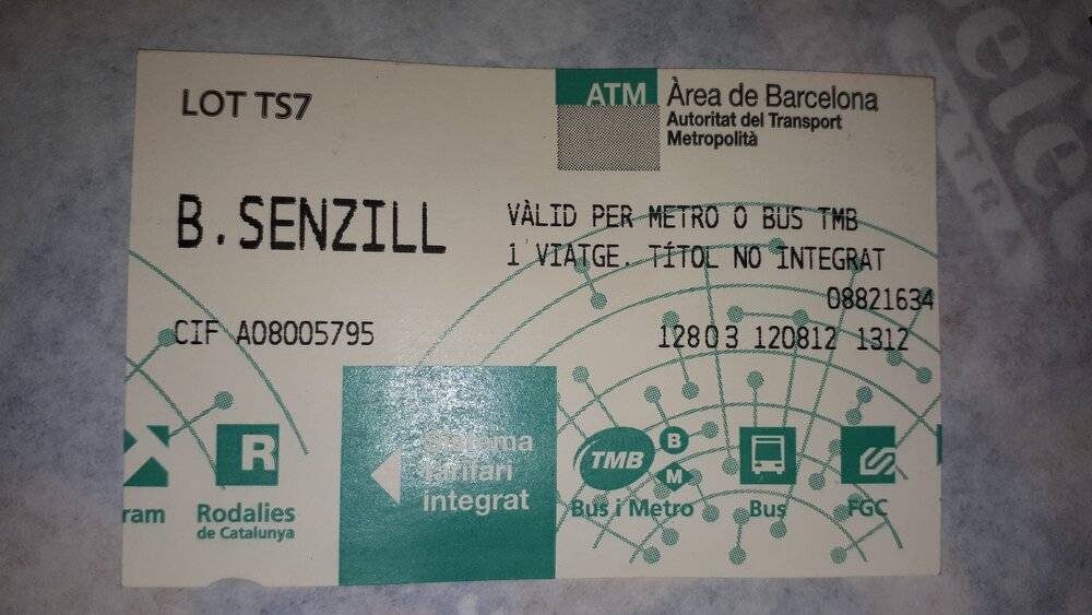 На всем городском транспорте действует интегрированная система тарифов. Это значит, что по одному билету можно пользоваться различным транспортом: метро, автобус, трамвай, железнодорожные сети FGC и Rodalies de Catalunya. На таком билете указан транспорт и обслуживающие компании, для которых этот проездной действителен. Есть и неинтегрированные — разовые билеты с ограничениями: по ним нельзя пересаживаться.