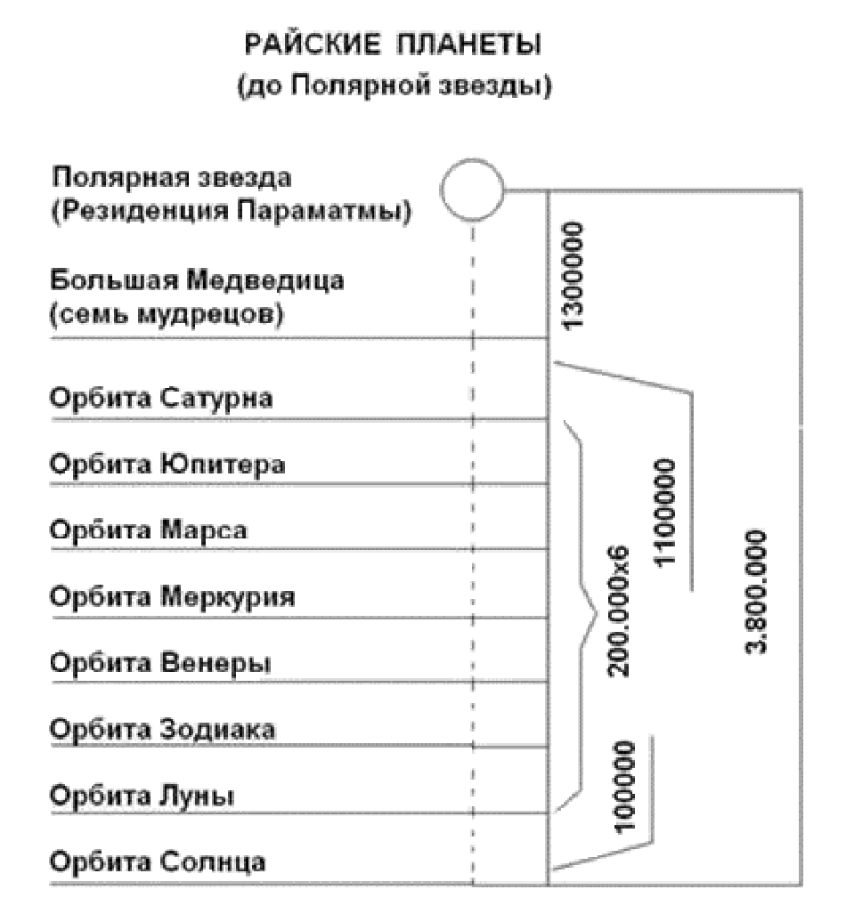 Известная нам Полярная Звезда описывается Ведами как Дхрувалока или Шветадвипа. По словам ведических учёных, она находится на расстоянии 10.400.000 миль от планетной системы, известной в Ведах как планеты Семи Мудрецов. Созданная по высшей воле Верховного Господа, Полярная Звезда является центром, вокруг которого вращаются все звёзды и планеты. Недремлющее, невидимое и могущественное время заставляет эти светила беспрерывно вращаться вокруг Полярной Звезды. Все планетные системы находятся под защитой Полярной Звезды, Дхрувалоки. Все эти планетные системы, вместе взятые, являются Шишумарой, совокупной гигантской вселенской машиной, образован-ной звёздами и планетами и напоминающей по форме дельфина (Шишумару), ныряющего в воду. Великие йоги медитируют на эту форму Господа, так как её можно видеть материальными глазами.