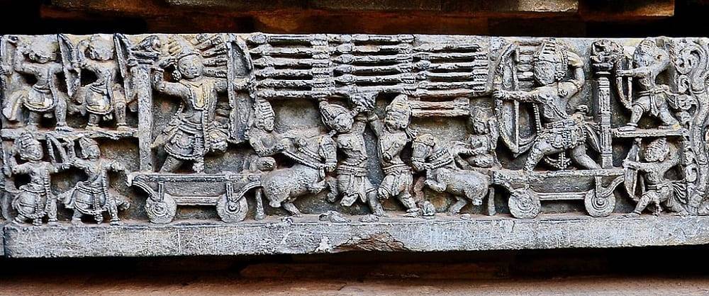 Финальная битва войны на Курукшетре, рельеф XII векМестонахождение: Храм Хойсалешвара, Халебиду, Индия