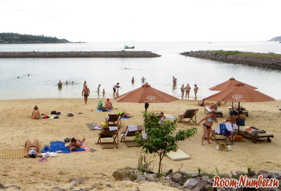 Море во Вьетнаме редко бывает красивым, туристам не рекомендуют брать маски и ласты для купания. Дно возле Нячанга песчаное, но не очень чистое. Гостиница расположена на второй береговой линии, в 200 м от неё есть городской пляж. Из-за продолжающейся реконструкции на нём пока отсутствуют лежаки и зонты. Туристы обычно заходят в воду слева от отеля, но там много ракушечника, поэтому купаться лучше в специальных тапочках.