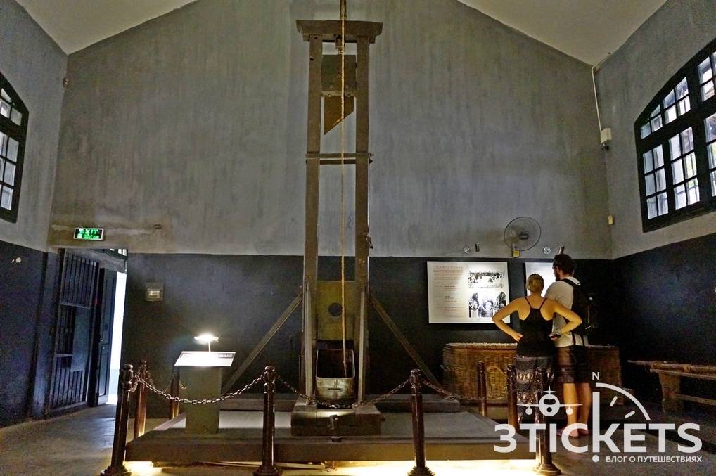 Но на самом деле, эта тюрьма была построена для политических вьетнамских заключенных. О пытках, применяемых в тюрьме, сложились легенда. Сегодня бОльшая часть тюрьмы снесена, а на оставшемся небольшой кусочке сделали музей, в котором воссоздали условия и быт вьетнамских политзаключенных. Имеется здесь и гильотина.