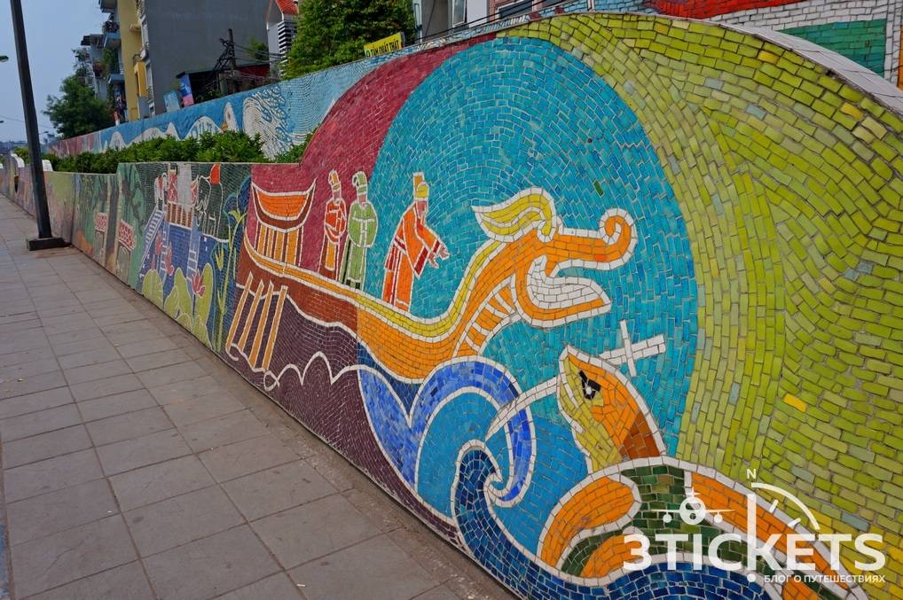Стену возвели в честь 1000-летия Ханоя, в 2010 году. Длина стены — 4 км, она стала самой длинной мозаичной стеной в мире и вошла в книгу рекордов Гиннесса. На протяжении стены можно проследить всю историю Вьетнама.