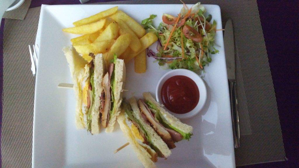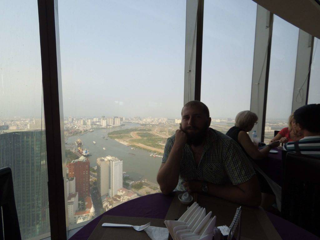 Мы воспользовались советом одного из посетителей и теперь сами советуем сделать также. Вместо покупки билетов на обзорную площадку финансовой башни Bitexco мы отправились в ресторан, расположенные чуть выше и имеющий такой же обзор на город. Напитки в ресторане очень дорогие, видимо специально, чтобы туристы не занимали столики ради одной чашечки кофе. А вот блюда стоят достаточно приемлемо для ресторана. Можно, конечно, ничего не заказать и уйти, налюбовавшись видами, но мы не такие жестокие. Да и порции очень порадовали. Мы заказали салат и сэндвичи, тем самым за двоих отдали по счету 380 тысяч. Да, сэкономили мы всего 20 тысяч донгов. Но при этом мы вкусно пообедали и спокойно полюбовались видами Хошимина. И да, окна не блещут чистотой, что оставило неприятный осадок.