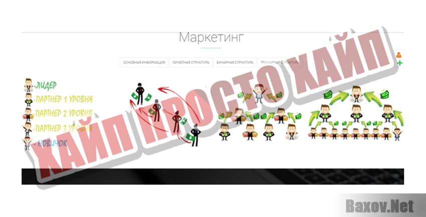 - В системе 3 уровня бинарного типа (2, 4 и 8 партнёров на каждом уровне)