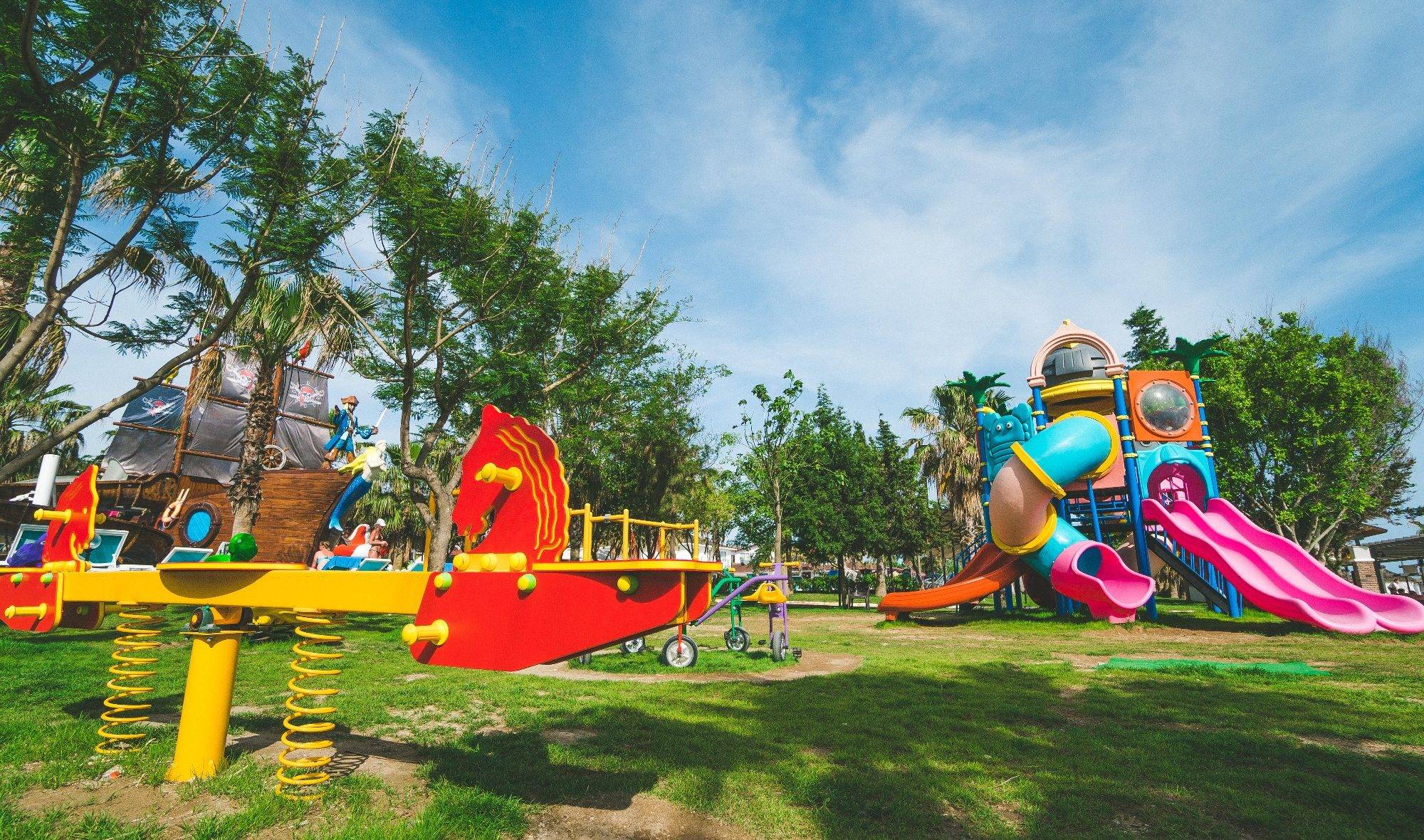 Дети и подростки просто в восторге. Им некогда скучать. Кроме того, подростки могут поиграть друг с другом в футбол, волейбол или баскетбол. Детская площадка, бассейны с горками, мини-дискотека и просмотр мультфильмов доступны для детей любых возрастов. Для малышей администрация подготовила прогулочные коляски, которые родители при необходимости могут взять напрокат.