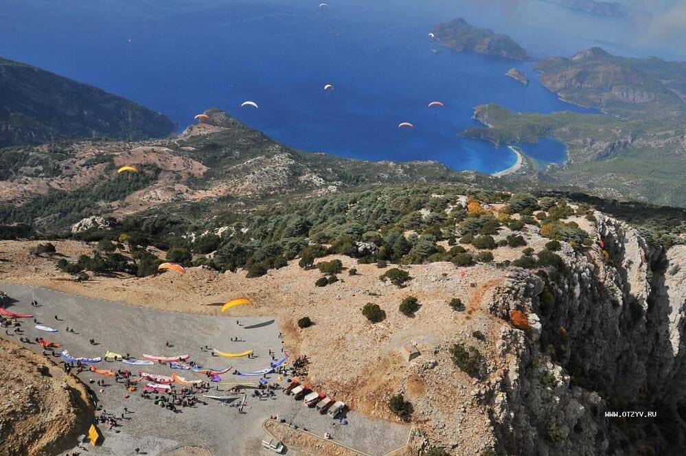 Оттуда открывается потрясающий вид на все побережье Олюдениза, Голубую лагуну и окружающие земли. Также, сидя в ресторане и попивая вкусный смузи или коктейль, вы можете своими глазами наблюдать за людьми, отправляющимися в незабываемый полет на параплане.