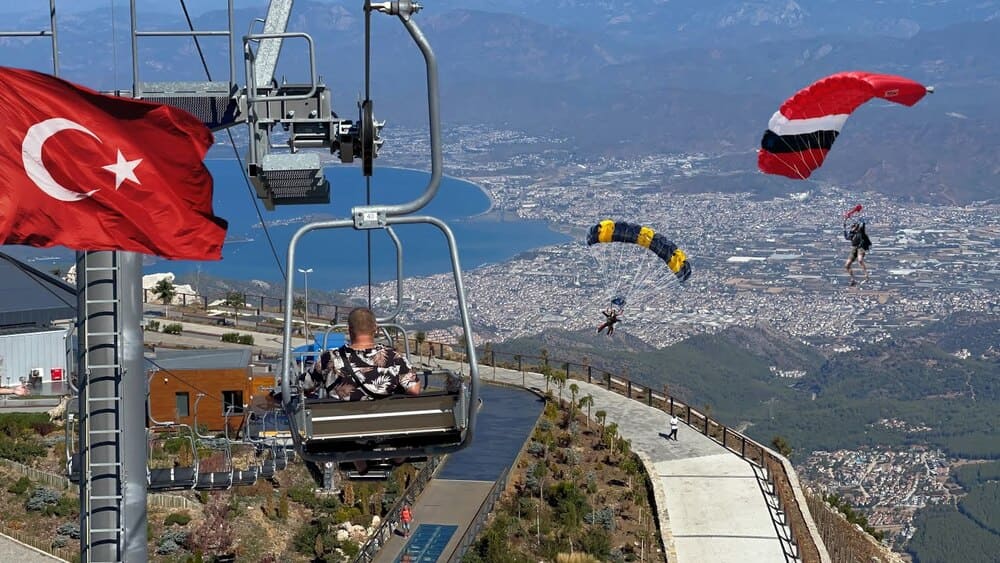 Подняться на вершину горы Бабадаг, по пути любуясь величественными пейзажами, можно по канатной дороге. Нижняя ее станция расположена в 1,5 км от поселка Олюдениз, по дороге в Хисареню, доехать до нее можно на местной долмуше.