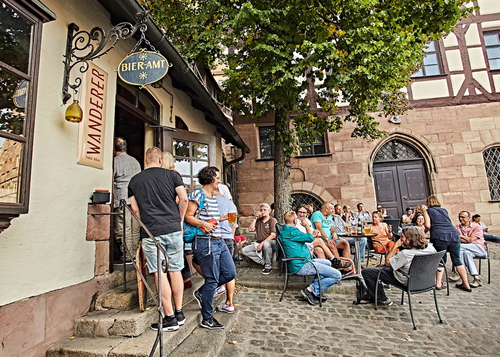 Нельзя написать гид по баварской кухне и не посоветовать хотя бы один пивной бар. На площади Дюрера зайдите в пивную от Café-Bar Wanderer. Она совсем небольшая, зато именно тут можно встретить коренных франконцев. На самой площади в теплое время трудно найти свободное место: говорят, что тут собирается местная интеллигенция. Выбор пива большой и постоянно обновляется. Цена от 2-3 евро за 0,3 литра.