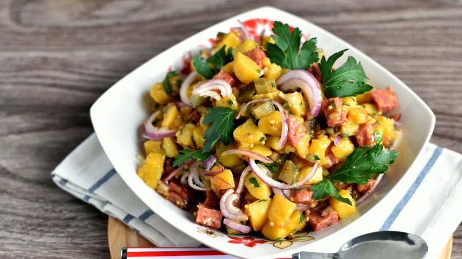 Картофельный салат с колбасой по-немецки.