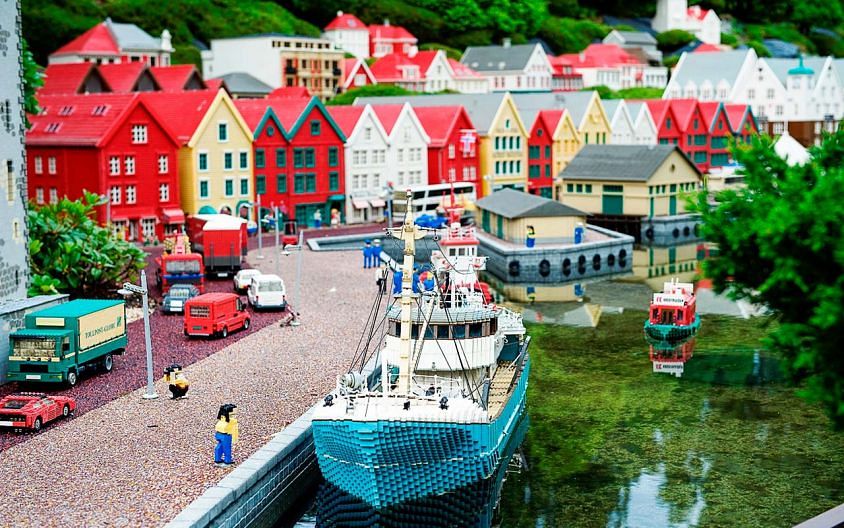 Это, по сути, сердце парка. Здесь из кубиков Lego собраны миниатюрные копии известных городов Европы, например, Венеции, Амстердама и других. Лего-города населены жителями, там ездят машины, плавают корабли, летают самолеты, куда-то спешат прохожие.
