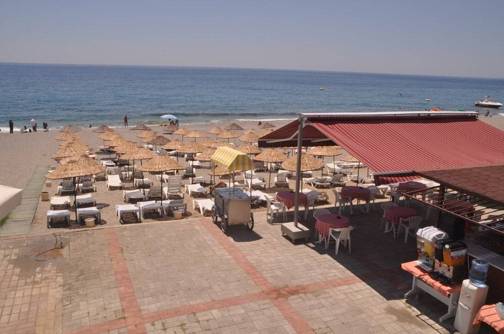 Пляж расположен на территории «Парка Горького». Прибрежная зона муниципальная, поэтому шезлонги и солнцезащитные зонты предоставляются тут за дополнительную плату. Всем своим жильцам курортный комплекс под роспись выдает пляжные полотенца (без депозитов и доплат). Берег покрывает некрупный, светлый песок. Море – чистое, прозрачное, с голубым отливом и хорошим, пологим заходом. За порядком очень внимательно следят: каждый вечер убирают мусор и разравнивают песок. Вода достаточно теплая, однако часто после обеда бывают волны: иногда на них получится весело порезвиться, иногда же от купания придется отказаться. На живописном побережье растут пальмы: занять по ними место достаточно трудно.