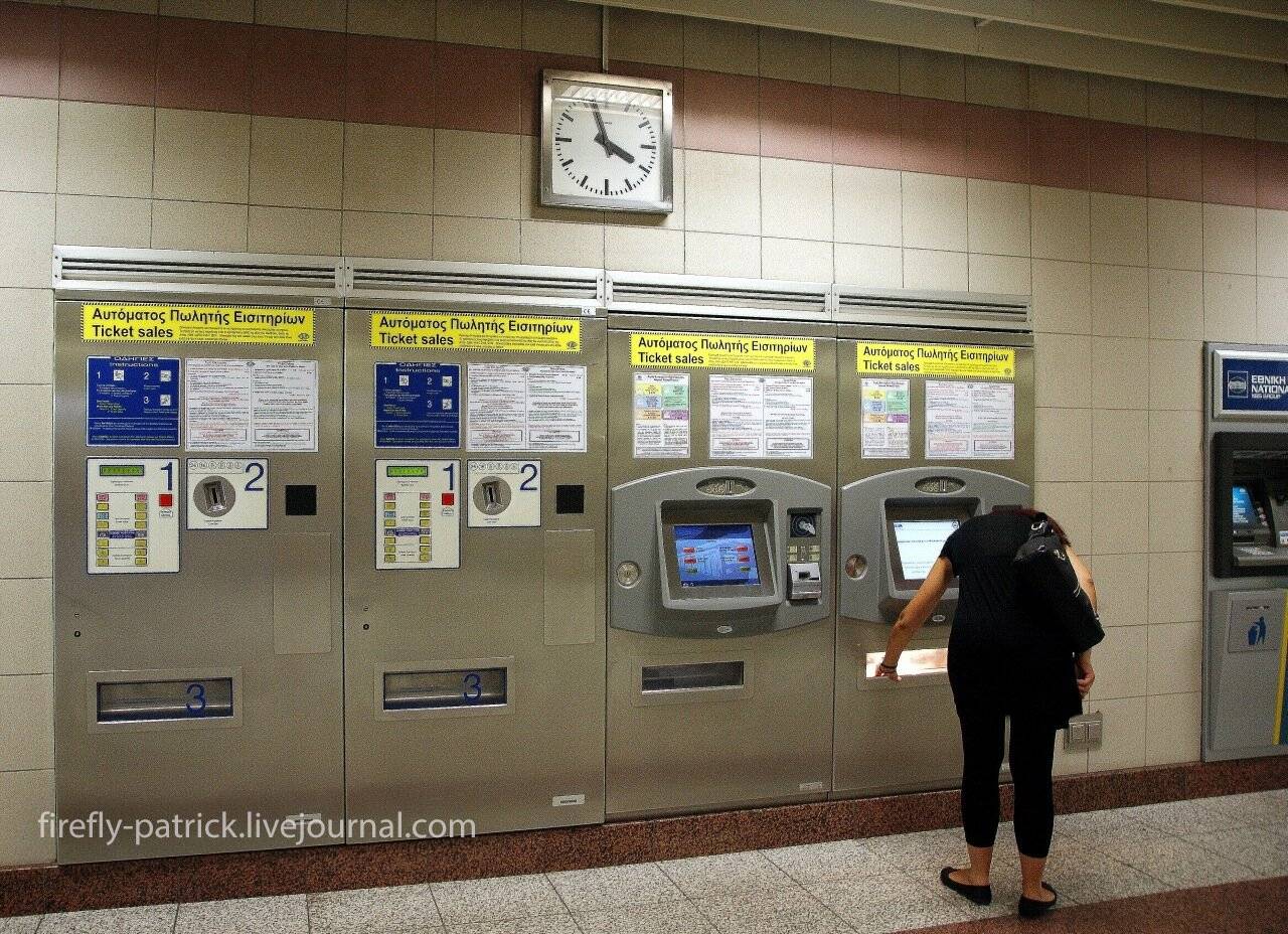 Приобрести билеты на метро в Афинах также нетрудно. Оплатить проезд можно в кассах, которые работают в вестибюлях станций с 8:00 до 22:00, или с помощью специальных автоматов.