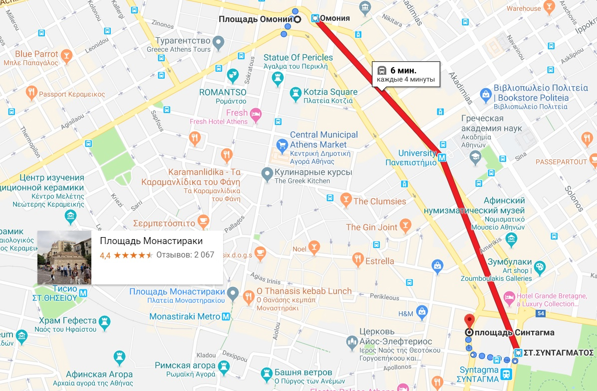 В афинском метро всего три ветки. Станции Syntagma, Omonia и Monastiraki приведут к одноименным площадям, которые считаются центром Афин.