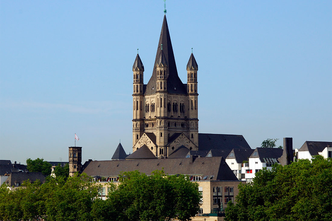 Гросс Сен-Мартен – одна из двенадцати романских церквей в Кельне. Благодаря своей башне внушительных размеров церковь также является одной из самых больших в городе. Если бы не кресты на вершине, Большого Святого Мартина можно было бы легко принять за средневековый замок.