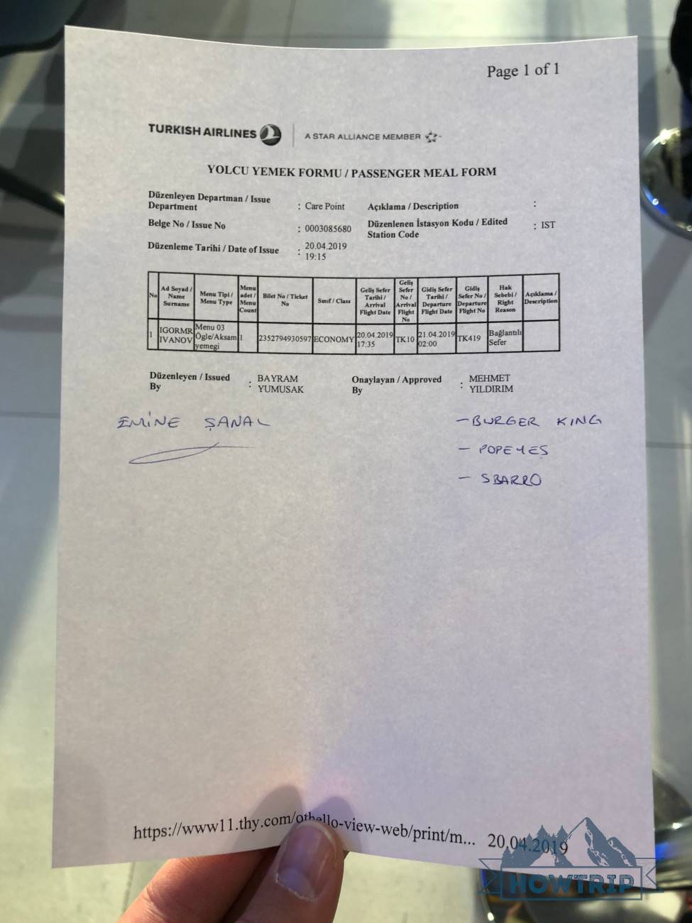 Как получить ваучер на еду и экскурсию от Turkish Airlines?