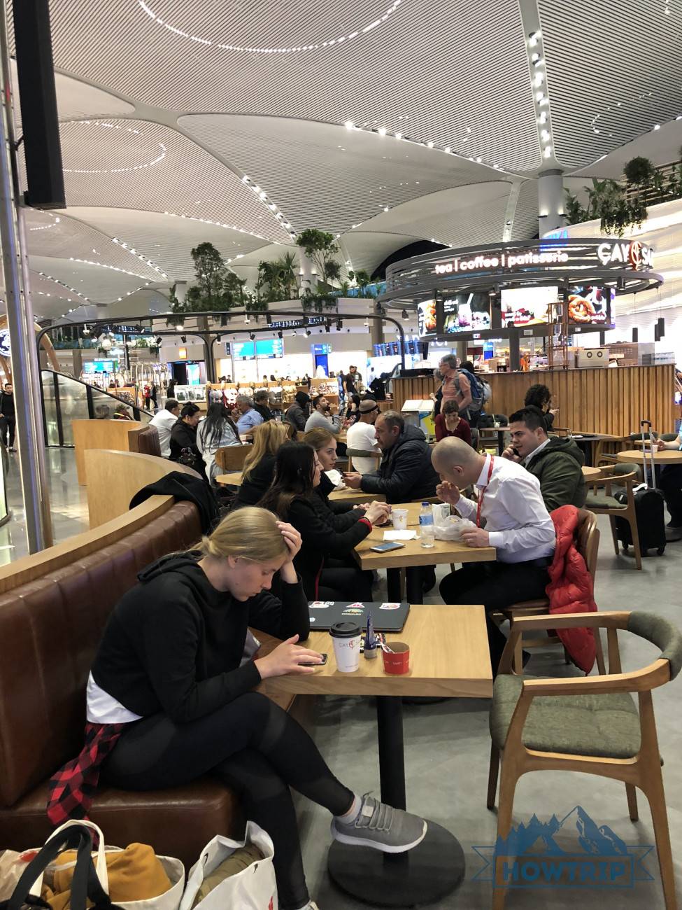 Неплохая кафешка в аэропорту – Cay Saati. Капучино – 18 лир, вода – 7 лир. Оплата лирами, долларами, евро.