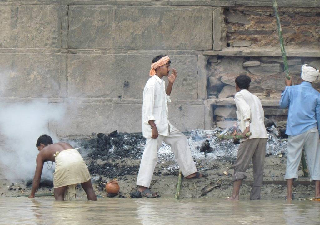 Когда человек умирает, его семья становится нечистой. Если человек умер в Варанаси, его положено кремировать в этот же день. Перед кремацией покойного омывают в Ганге, натирают различными благовониями, смесью из меда и различных масел и читают мантры. Вся семья также совершает омовение. Один из мужчин семейства бреется наголо и облачается в белые одежды. Если умер отец — это делает старший сын, если мать — младший сын, если жена — муж.