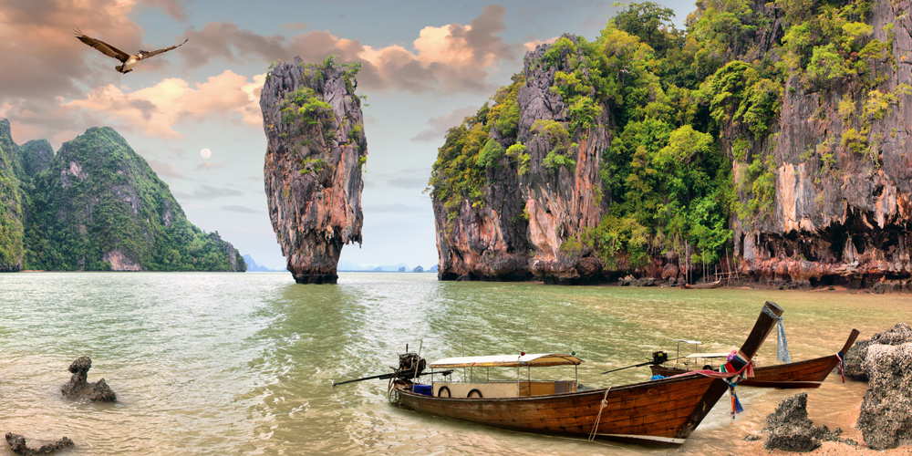 На скоростной лодке, вы сможете посетить больше островов в этом прекрасном месте. В программу тура к острову Джеймса Бонда — обязательно входит катание на каяках (каноэ). Некоторые туры предусматривают самостоятельное катание, а основном, вас возят опытные местные жители.