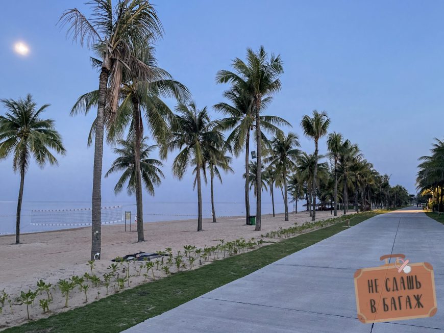 У центрального пляжа вместо набережной линия ресторанчиков и пляжных баров, а в Дуонг Бао более просторно: прекрасная пальмовая аллея с велодорожкой и повсюду гамаки и качели прямо на пляже. Можно заплатить и взять лежак, либо отдыхать бесплатно прямо по соседству.