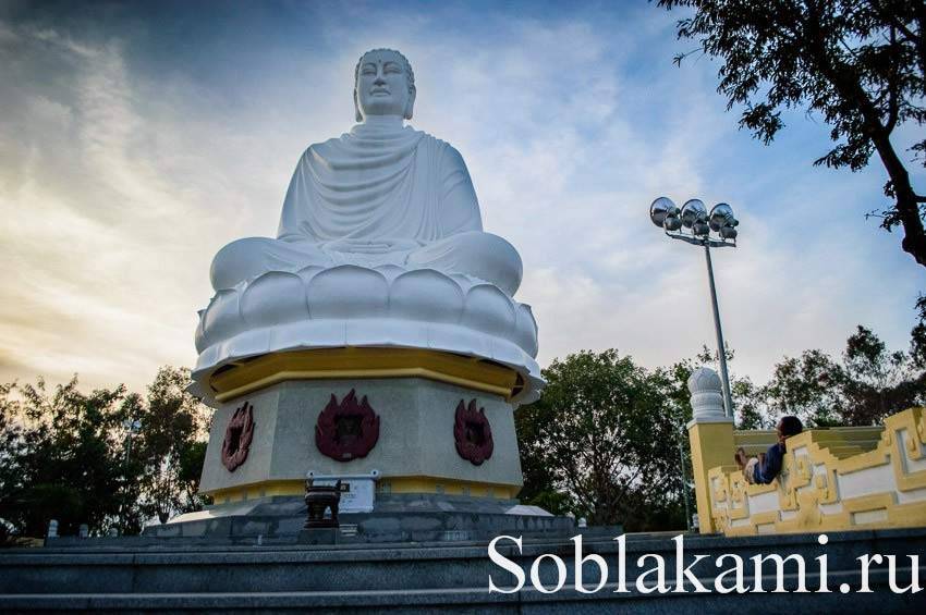 Большой буддистский храм на окраине Нячанга. Главная его изюминка – это большая статуя сидящего на лотосе Будды и захватывающие виды Нячанга с горы. Приезжать сюда лучше ближе к вечеру, когда не будет туристов. Будет не так жарко подниматься наверх, «гиды самозванцы» потеряют бдительность, а вы сможете увидеть закат над Нячангом.