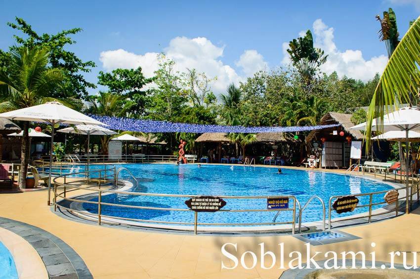 - максимальный пакет за 19 долларов (420 тысяч донгов) для детей и 27 долларов (600 тысяч донгов) для взрослых. Сюда входит: трансфер, встреча на Хон Там с прохладительным напитком, все удобства острова (начиная от пляжа и заканчивая пляжным футболом и волейболом, гольфом и бассейнами – как и для всех посетителей Хон Там), обед и морепродукты на гриле (в дообеденный период), бесплатный проход на надувные батуты, свежие фрукты до и после обеда, аниматор для детей, танцевальная программа.