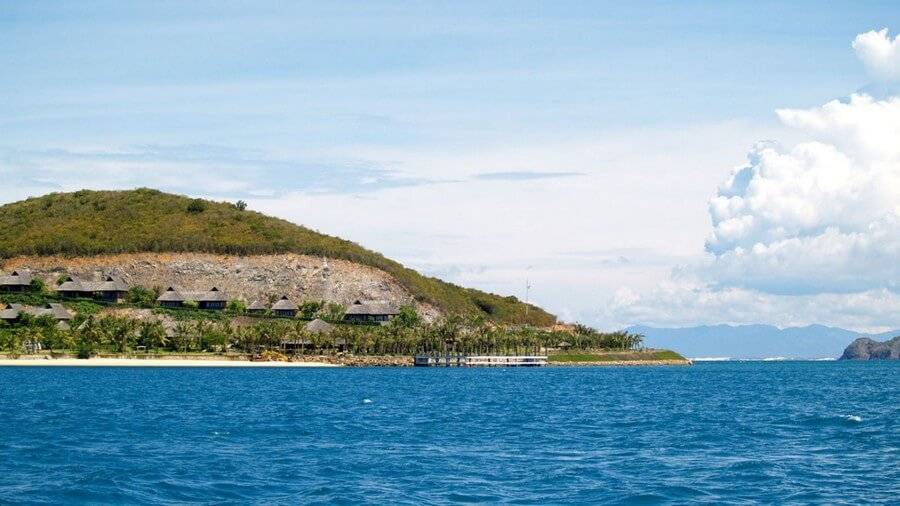 Минусы пляжаПляж находится в двух часах езды от Нячанга, добраться сюда можно только на такси или на арендованном мотоцикле. Так же на острове очень жарко и почти нет тени, поэтому не помешает захватить с собой зонтик и солнцезащитный крем. С сентября по ноябрь лучше избежать поездок сюда, так как в это время сильные волны и ветер. Чтобы попасть на остров, нужно сначала приехать на паромную переправу, а уже только затем приплыть на остров.