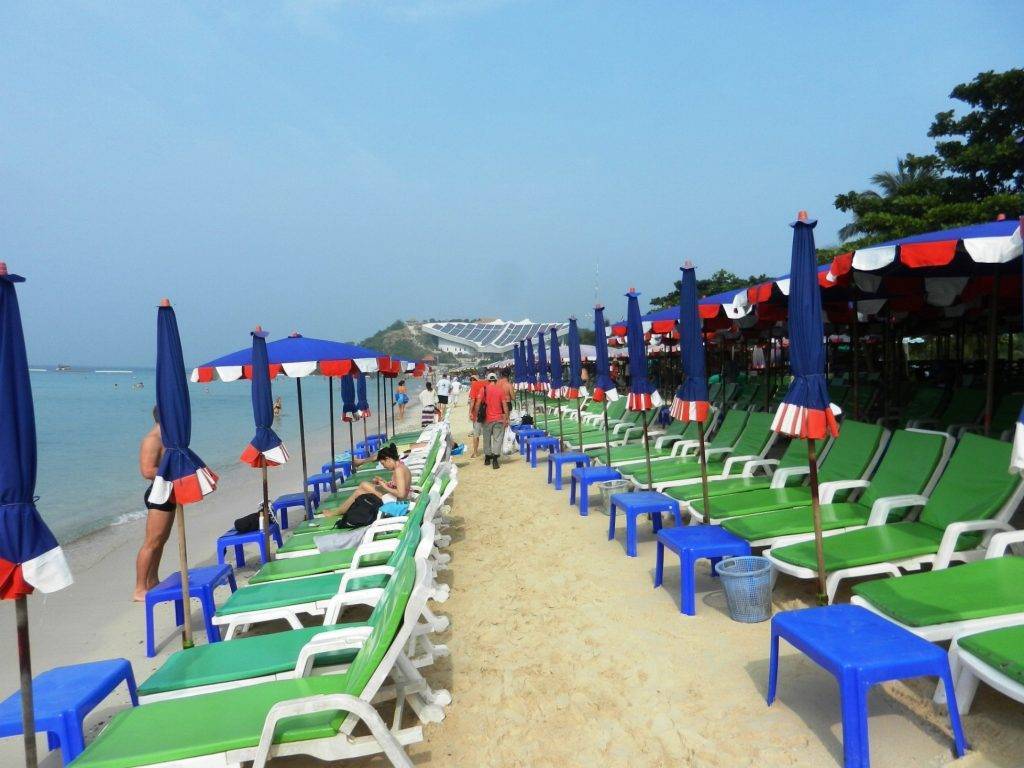 Пляж на Ко Лан. Стоимость лежака на первой линии от 75 до 100 бат