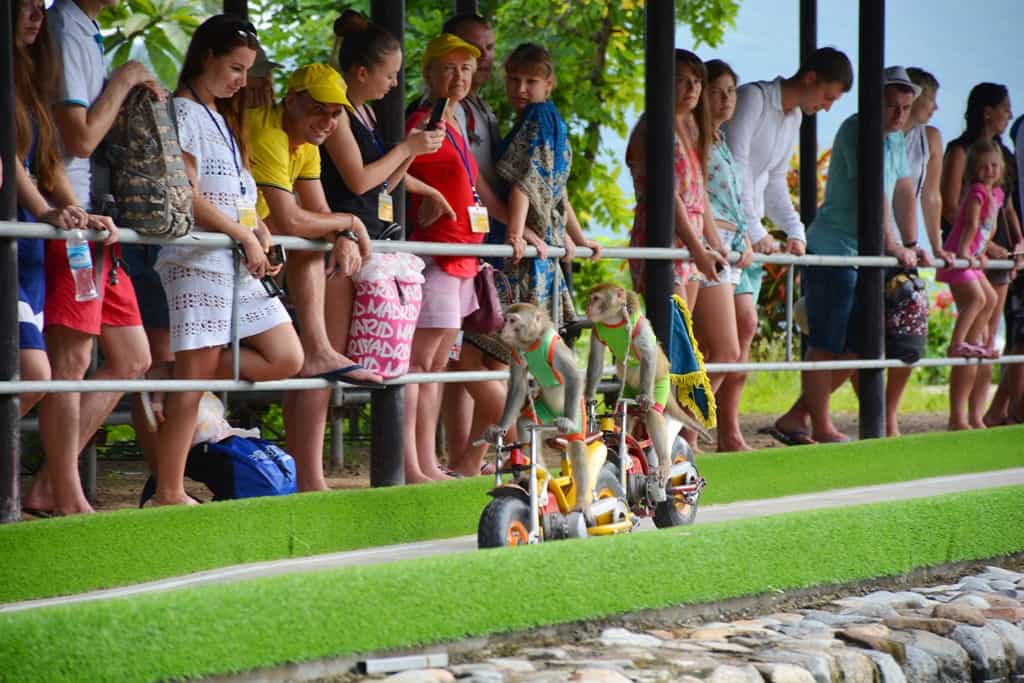 Here, performances such as dog racing or monkey swimming competitions are often attended by a large number of tourists, especially children. Guests will get to see the monkey swimming race and make a bet on the monkey which will finish the swimming race the first. If the monkey they chose finishes the race first, the guest will be given a special gift.